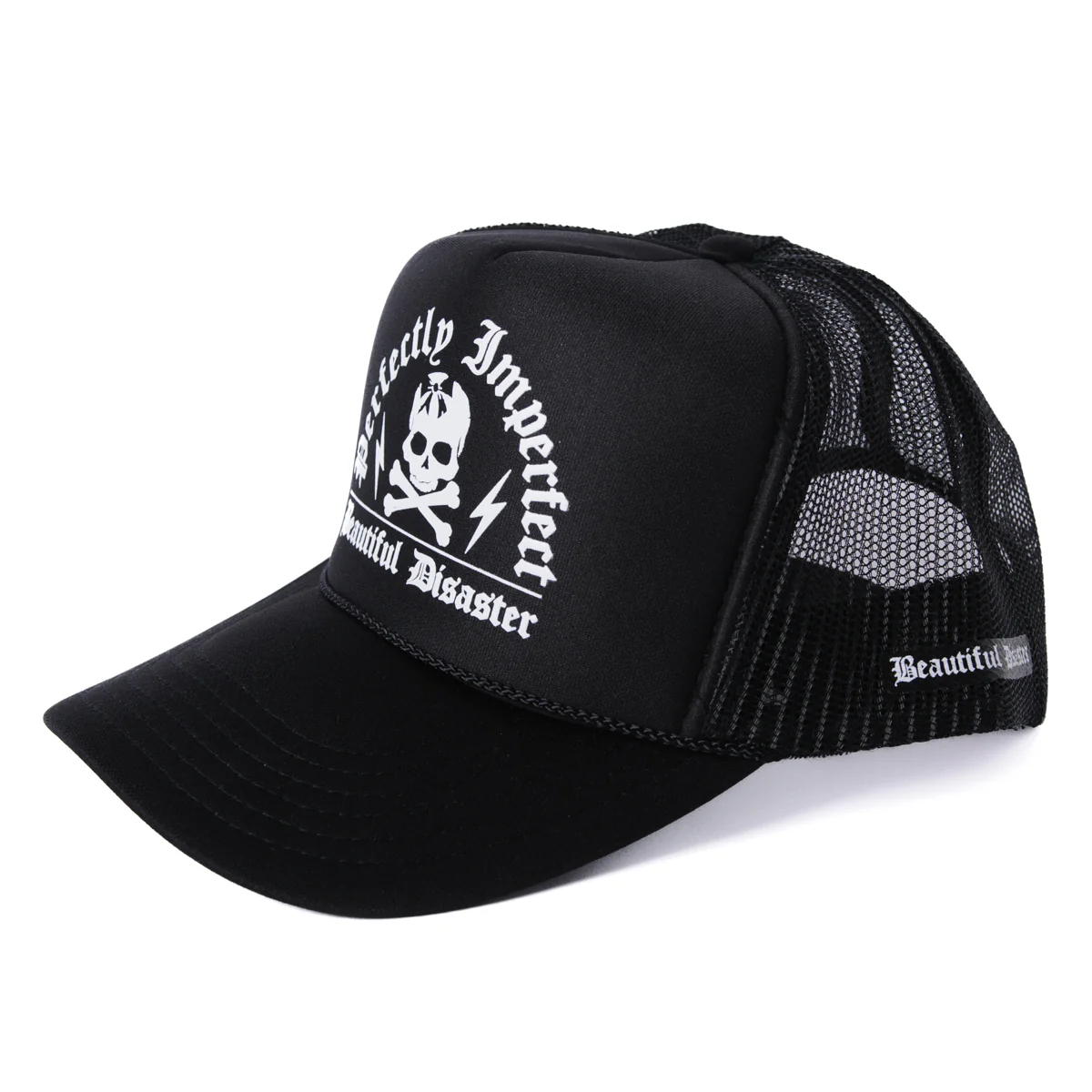 Featuring the words "Perfectly Imperfect" boldly printed on the front, this hat celebrates the beauty found within flaws. With its classic trucker design and adjustable snapback, it offers both style and comfort for any occasion.